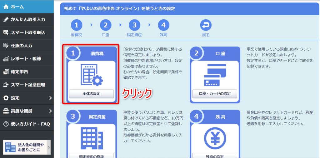 やよいの青色申告オンラインで消費税の設定をしよう!