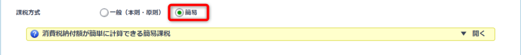 課税方式は、会計処理が簡単な「簡易」を選択しました。