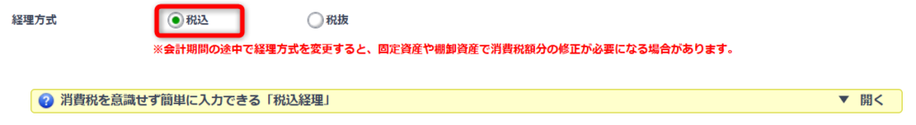経理方式は税込の方が簡単らしいので、「税込」をチェックしました。